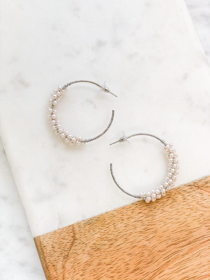 Jody Pearl Cluster Hoop Earrings - Silver