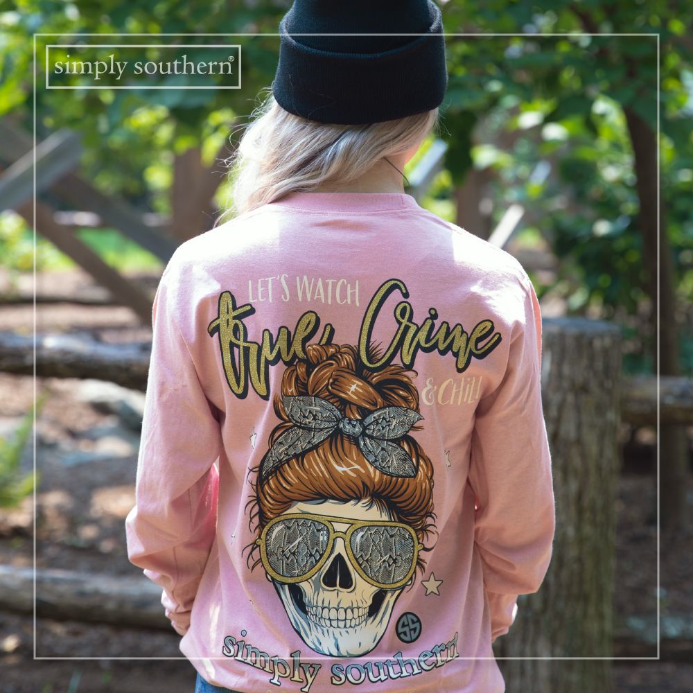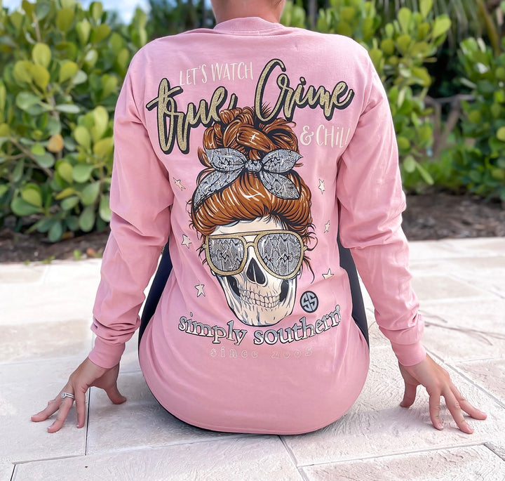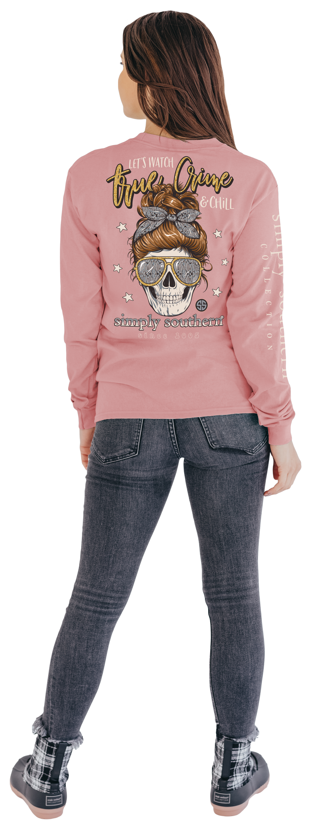 'Let's Watch True Crime & Chill' Messy Bun Long Sleeve Tee by Simply Southern