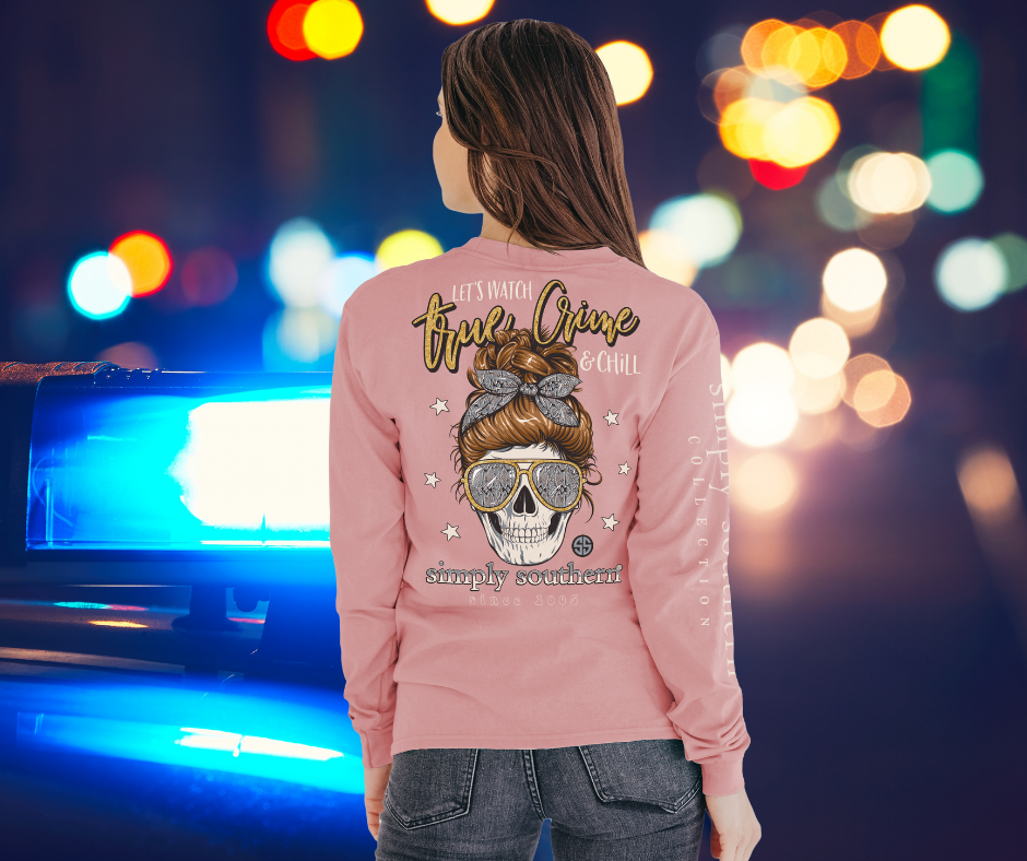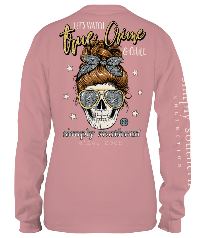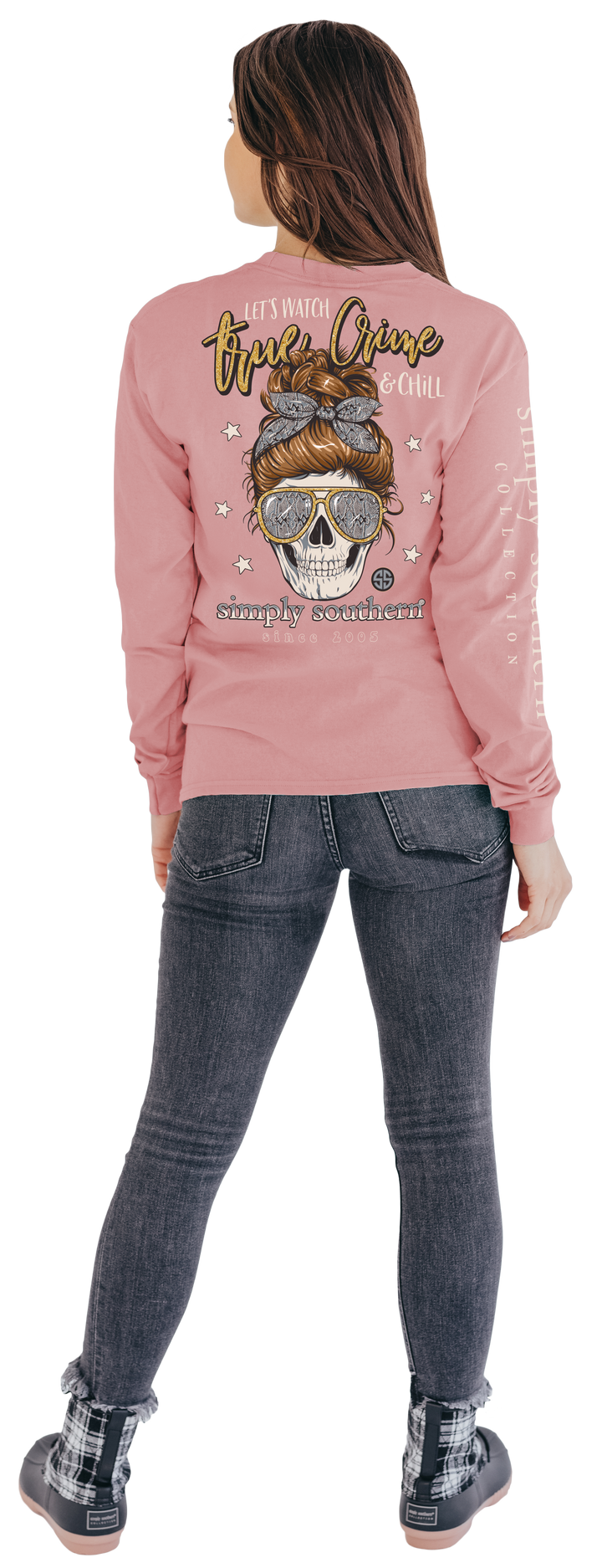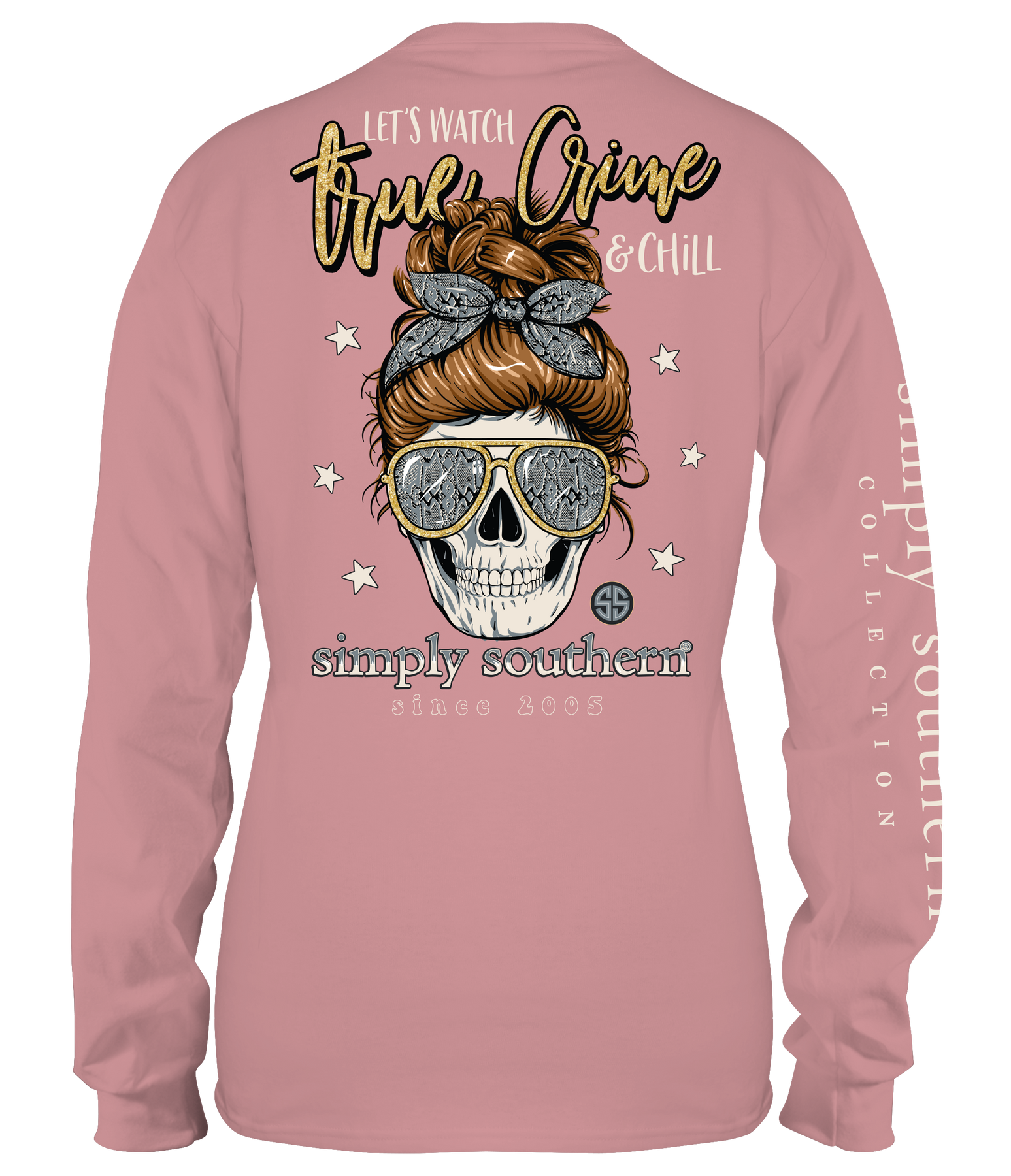 'Let's Watch True Crime & Chill' Messy Bun Long Sleeve Tee by Simply Southern