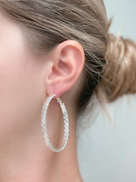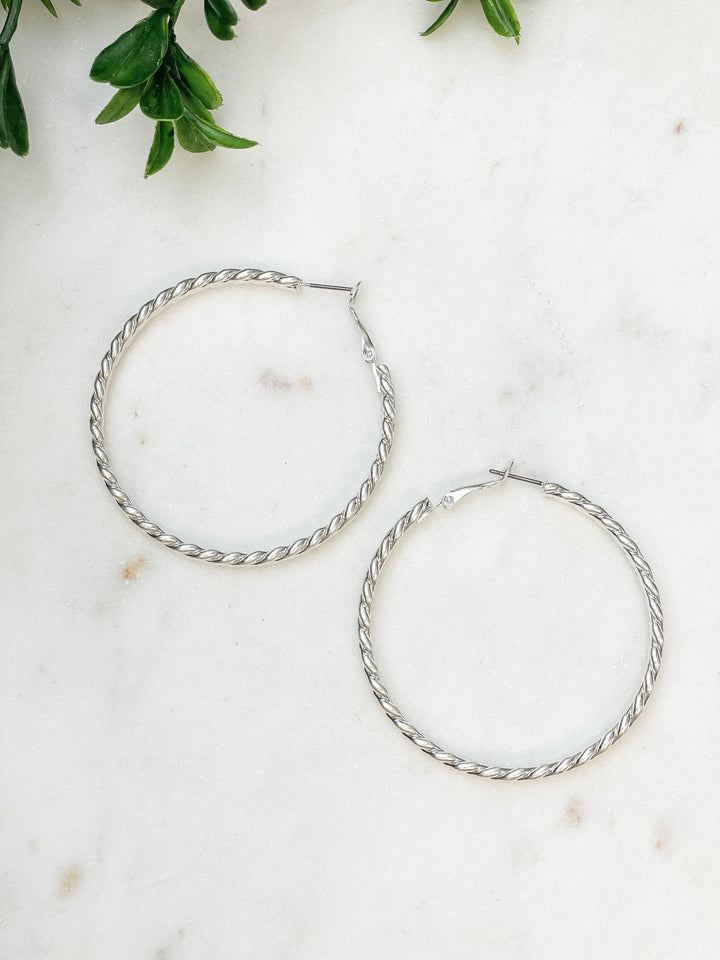 Wave Metal Hoop Earrings - Silver