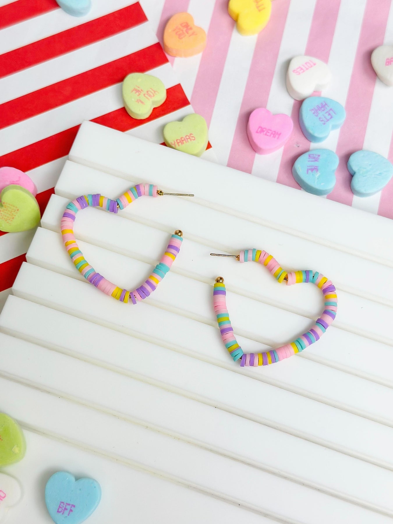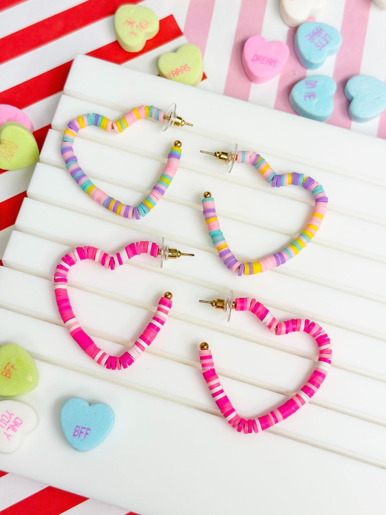 Maddie Rubber Disc Open Heart Hoop Earrings - Purple Multi