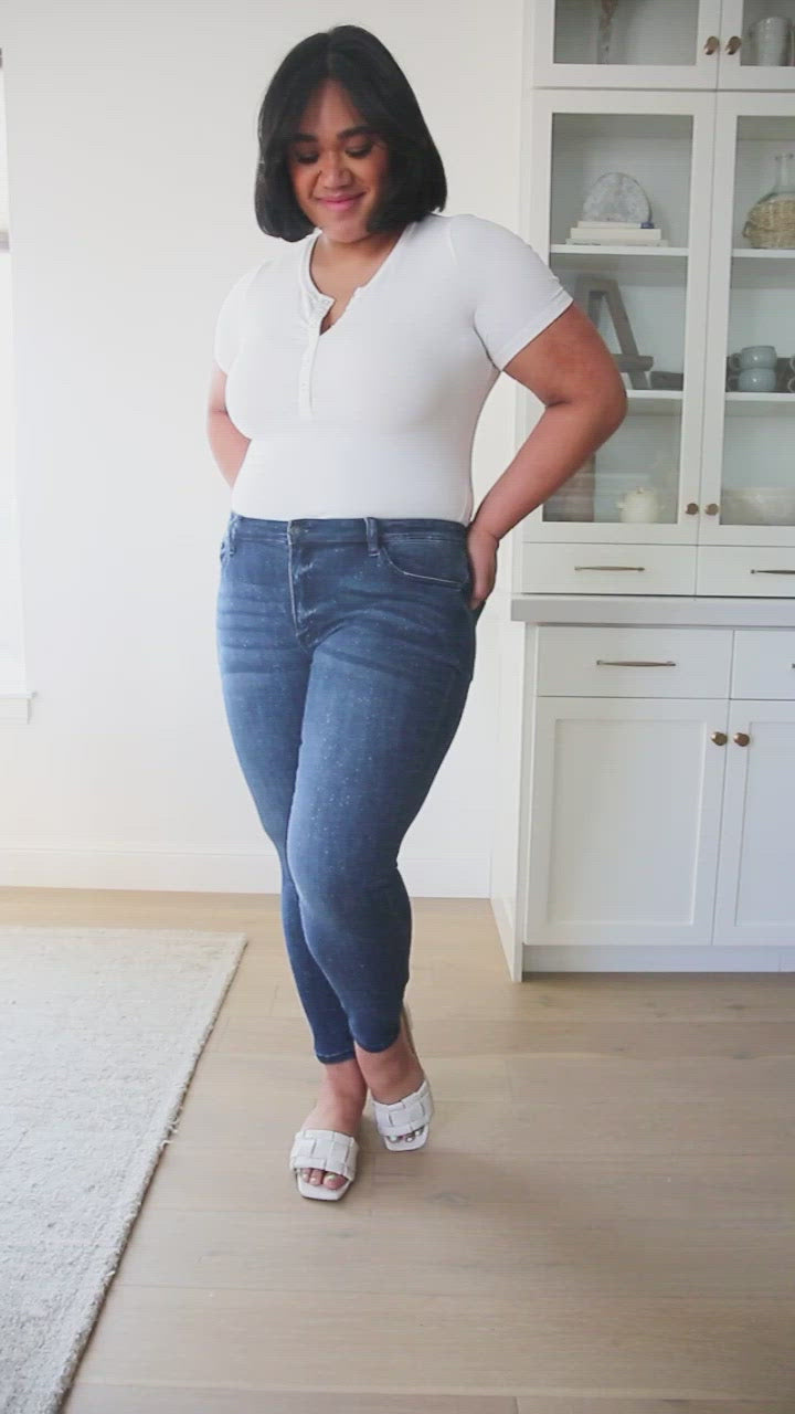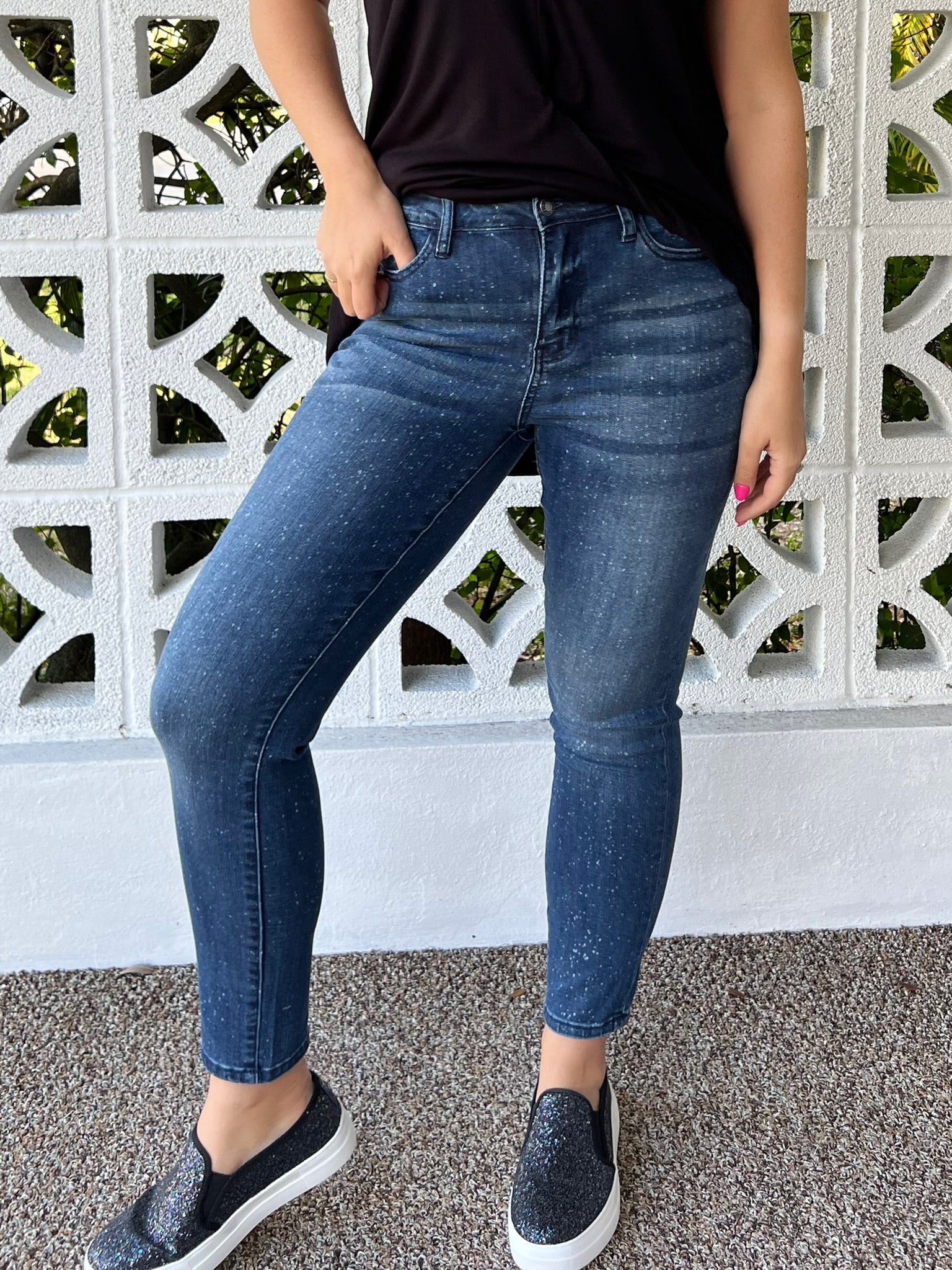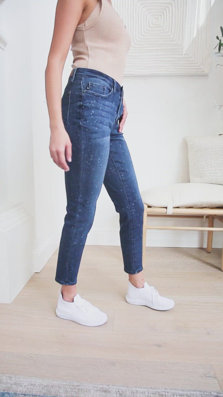 A perfect everyday jean with an added twist. The Mid-Rise Relaxed Fit Mineral Wash Jeans are a dark wash, ankle length skinny jean, painted in a subtle bleach splatter all throughout. We love adding these jeans to any outfit to add an extra splash of fun!