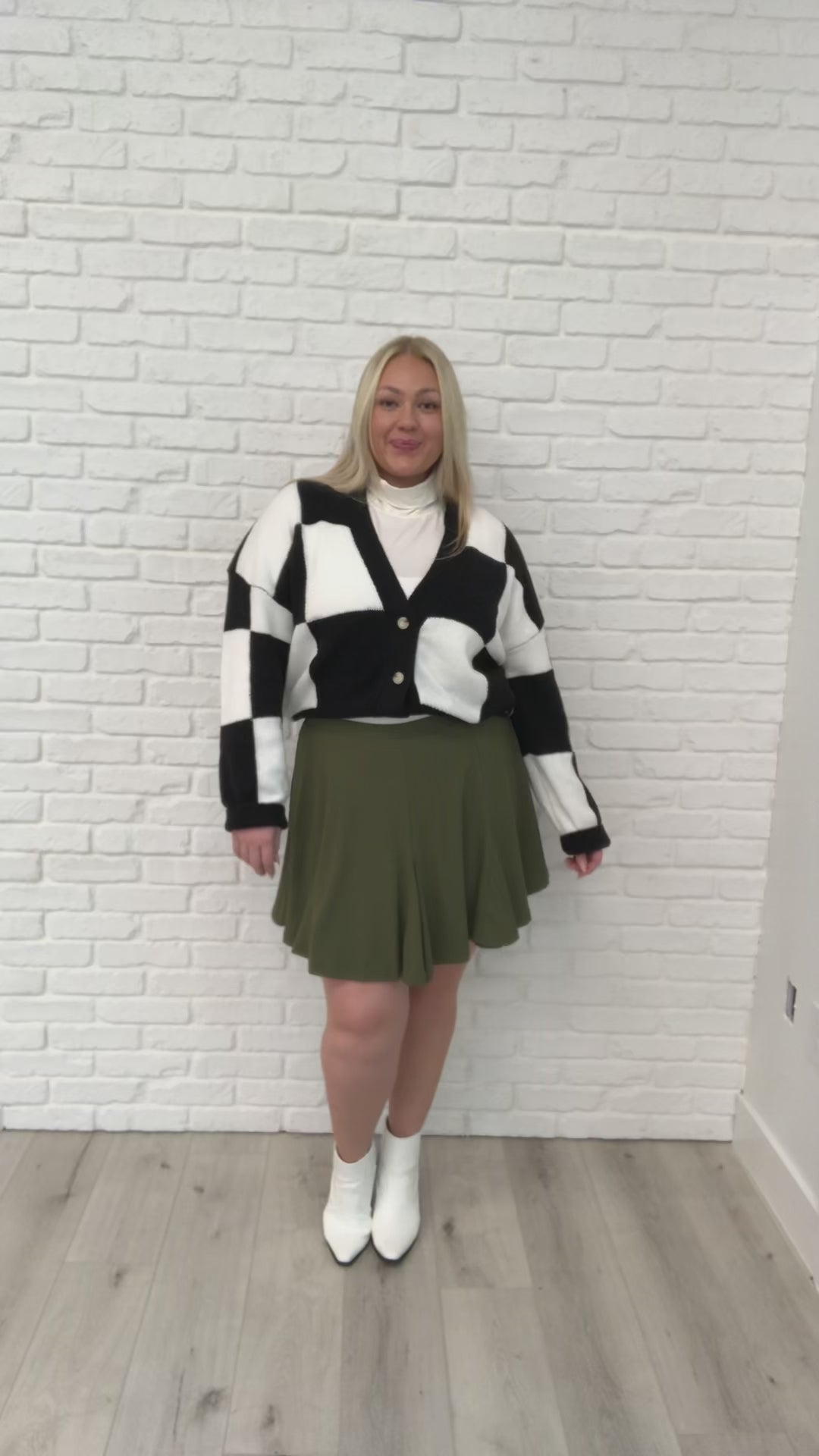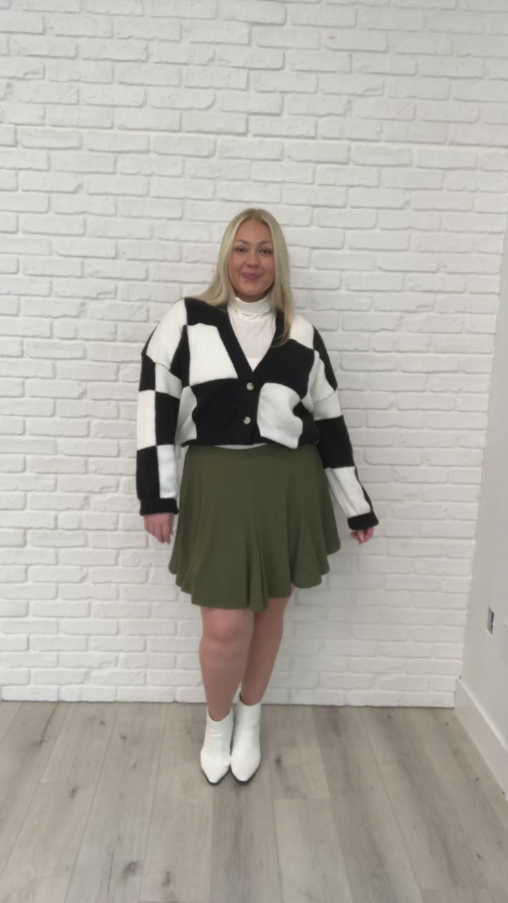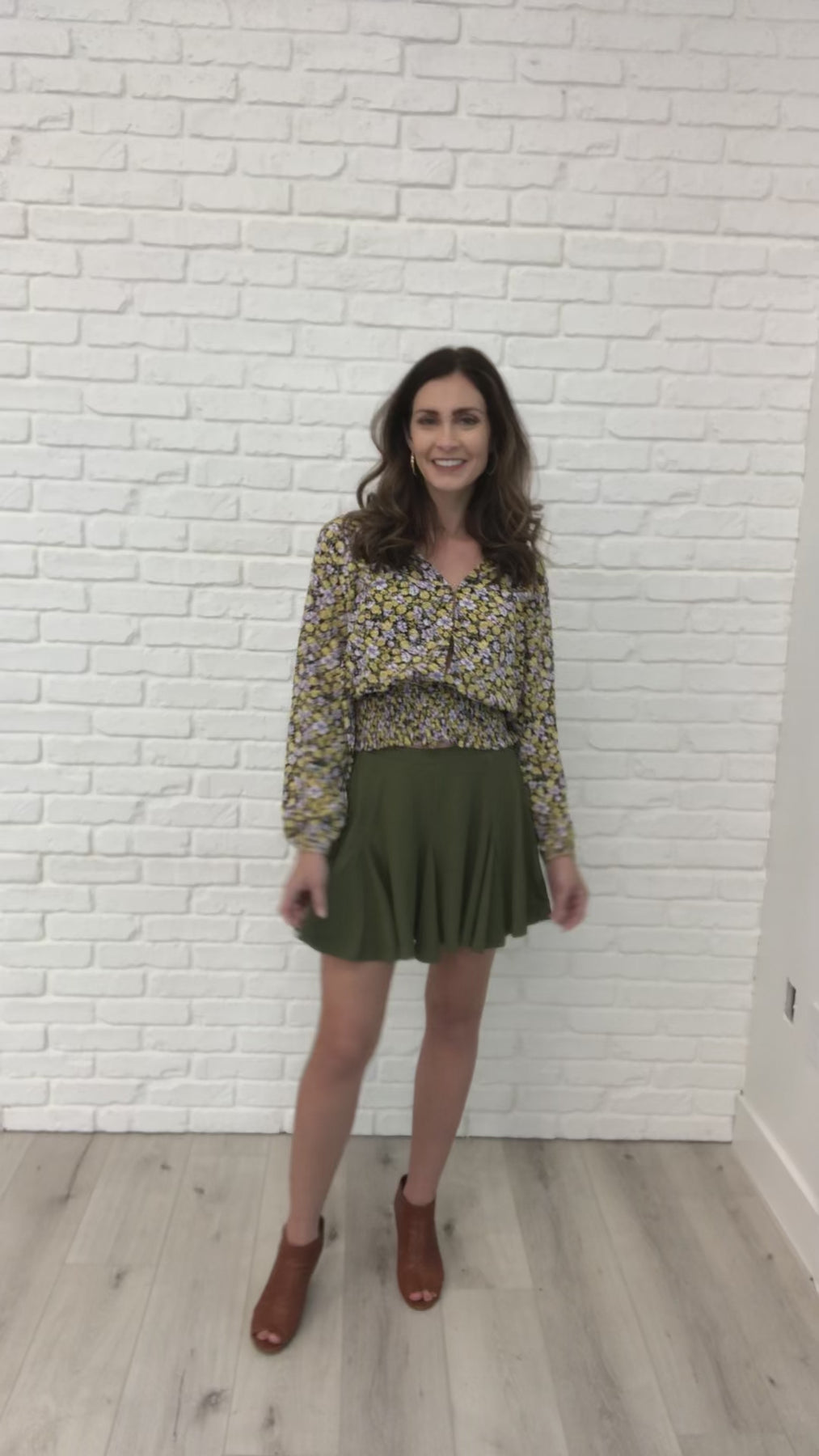 You'll be set for a good time in the November Romance Skort in Olive! This amazing skort features a textured, ribbed knit that shapes a hi waist, topping a flouncy, godet style skirt ending at a mid-thigh hem. You'll feel comfortable, secure and on trend in this essential skort!
