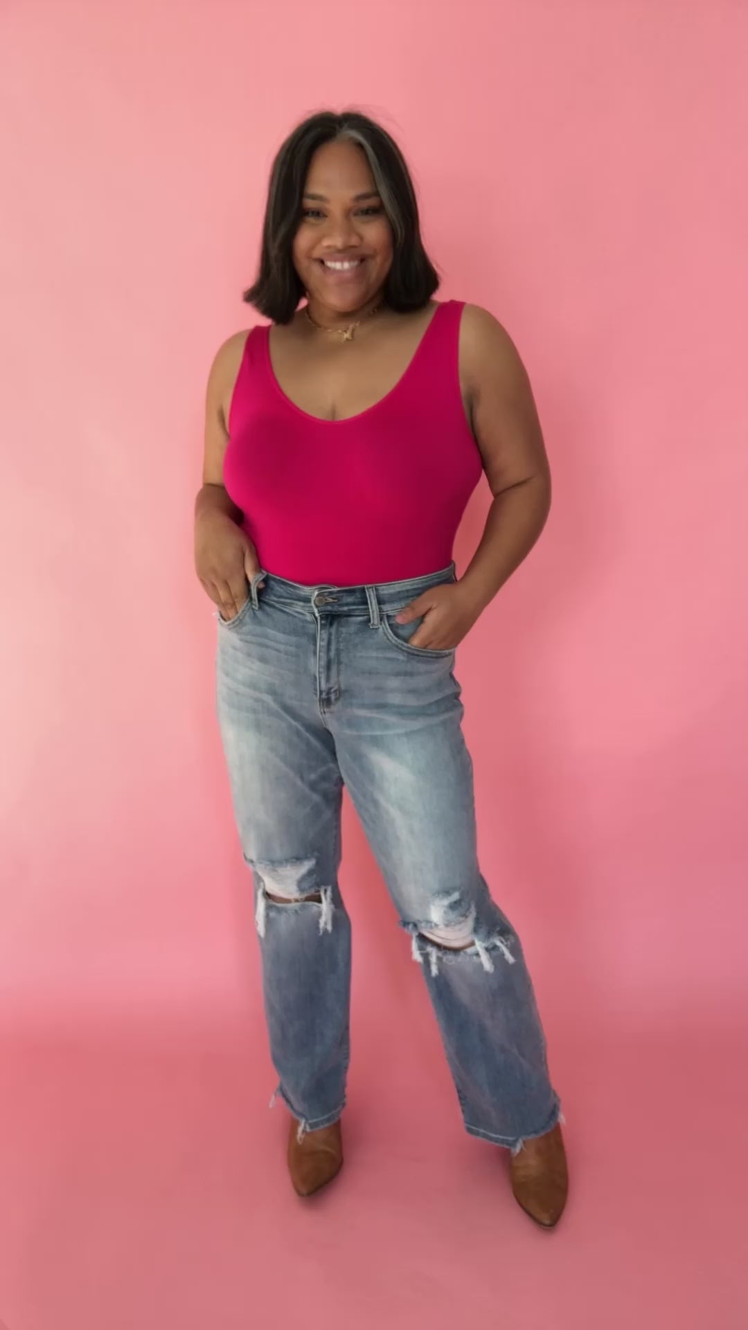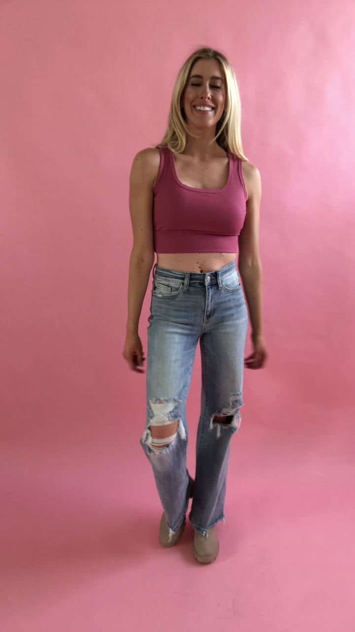 Your best outfits start with the Rose High Rise 90's Straight Jeans! Featuring a stretchy, light wash denim that shapes a high rise waist with five pocket cut and zipper fly. 90's Straight cut pant legs end with chewed hems with distressing at the knees.
