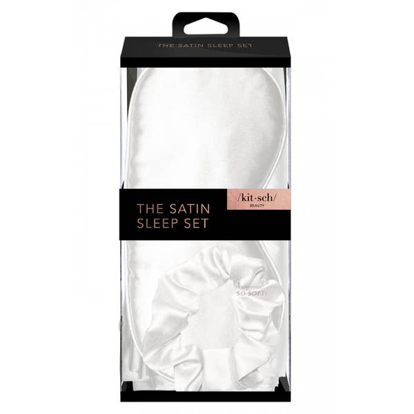 KITSCH Sleep Set are your newest nighttime necessity. Their satin construction won't crimp or agitate our strands while you sleep, allowing you to wake up frizz free and ready to take on the day! Banish breakage and conquer creases with these chic day to night no-brainers. Each package includes 1 standard size pillowcase (26"x20"), 1 eye mask, and 1 scrunchie.