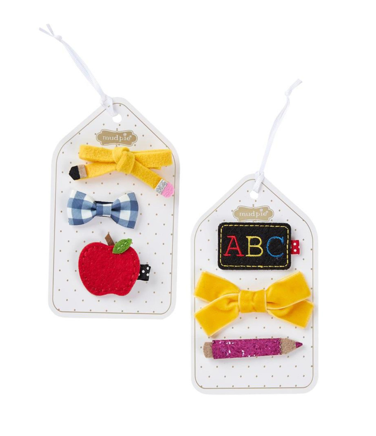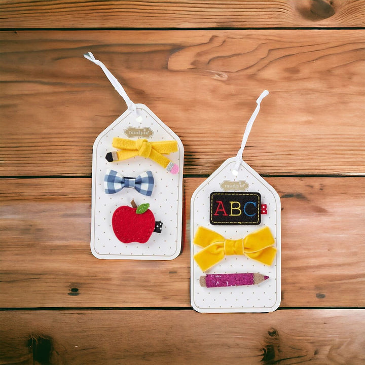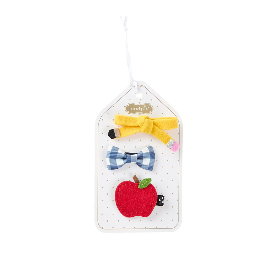 Set of three felt alligator hair clips. Choice of ABC set or Apple set.