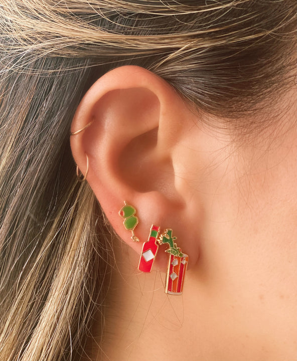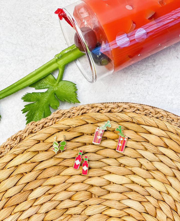 Set of 3 Enamel Stud Earrings - Bloody Mary