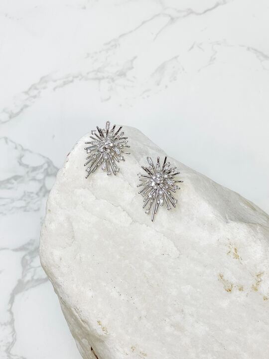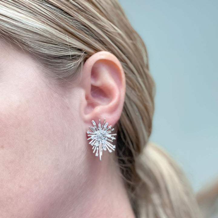 Cubic Zirconia Silver Starburst Glitzy Post Earrings