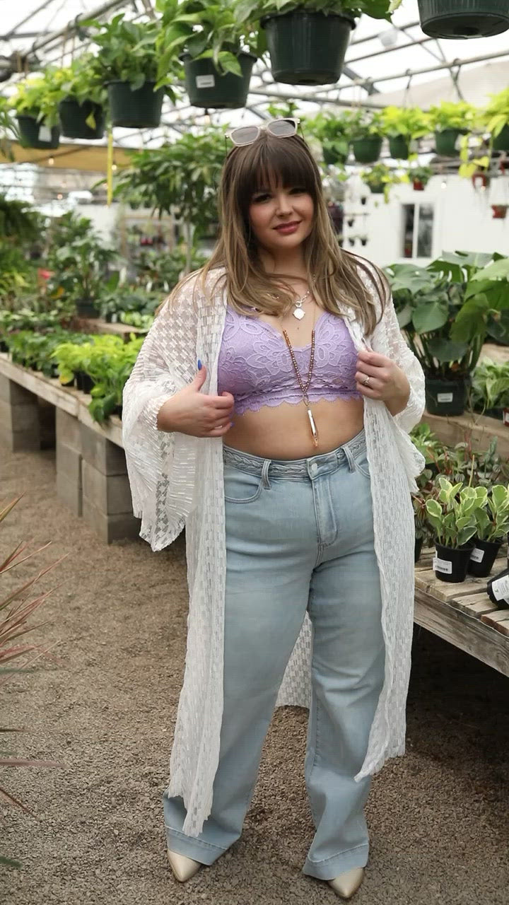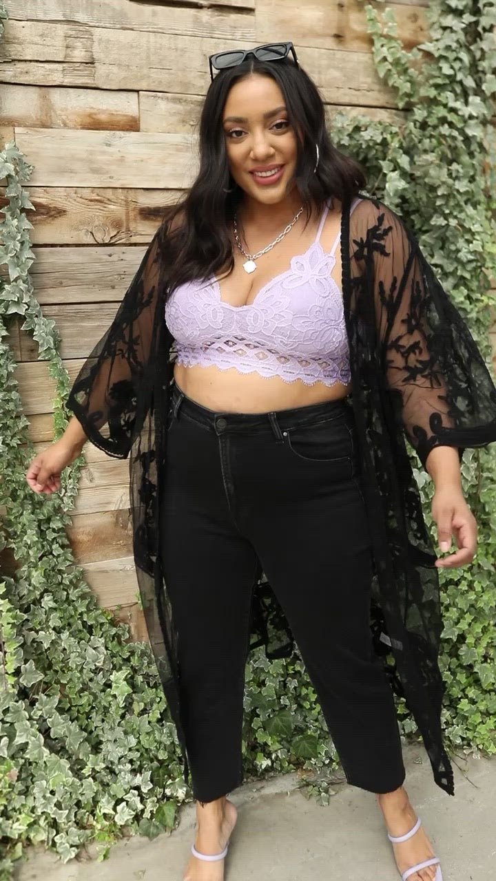 Add a little sweetness to your day in the So This Is Love Bralette! A floral, crochet lace lines darted triangle cups, and a sheer bottom band while double, adjustable straps cross over a smocked, elasticized back. Pull-on design.