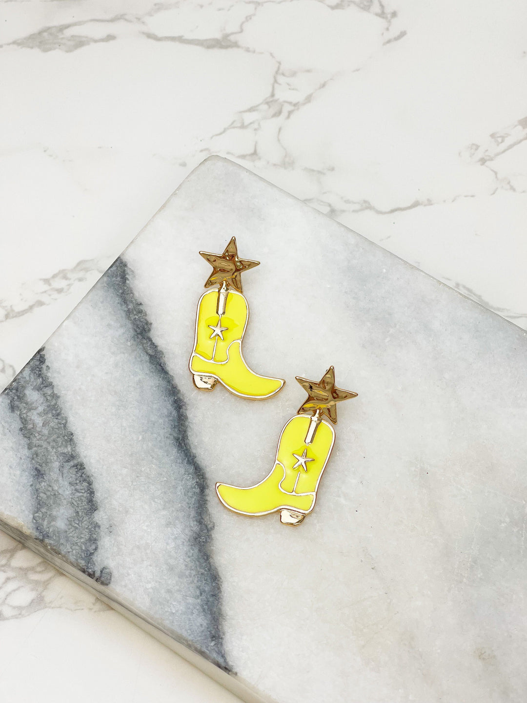 Star Cowboy Boot Enamel Dangle Earrings - Yellow