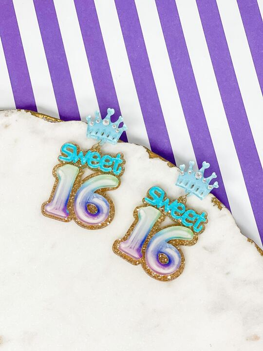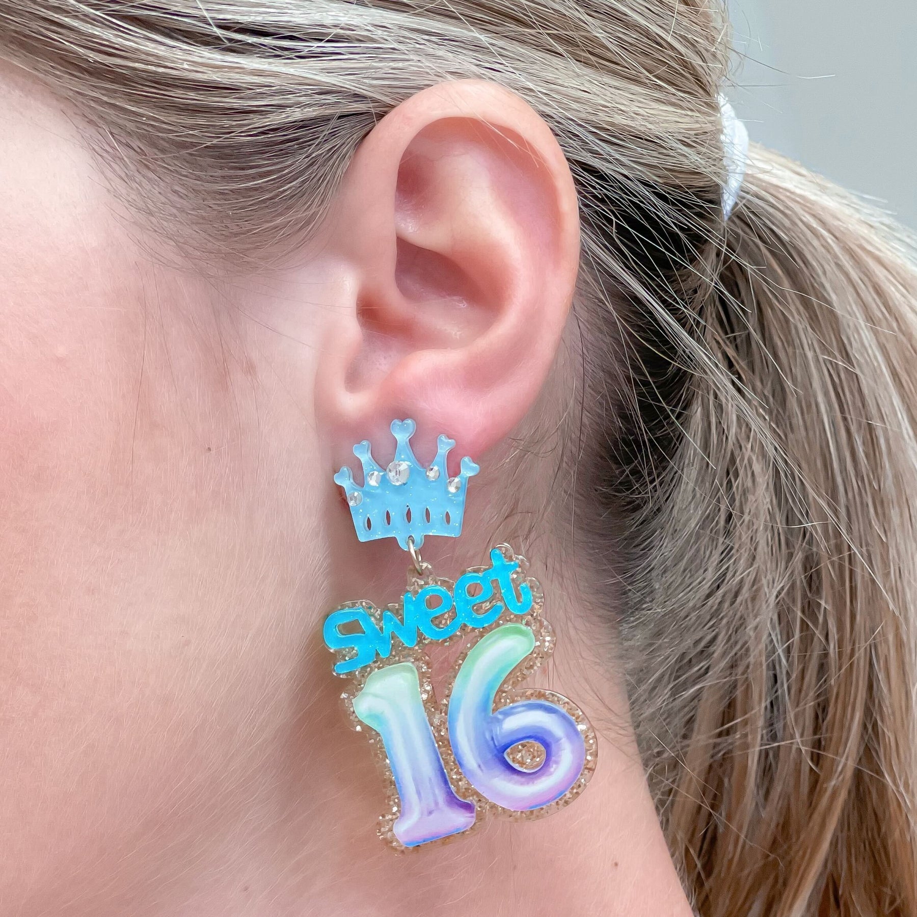 The perfect gift! This acrylic earring will be the perfect addition to your look when celebrating a 16th birthday!