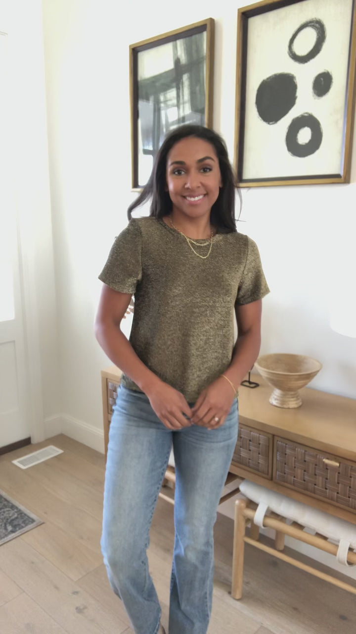 Sweetly Twinkle Short Sleeve Knit Top In Black