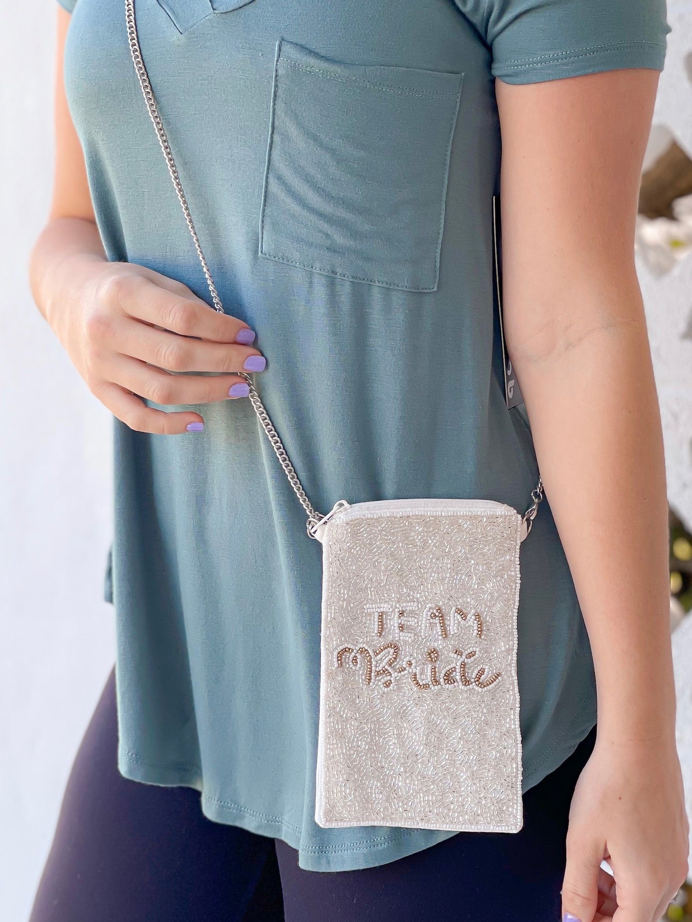 'Team Bride' Beaded Phone Crossbody