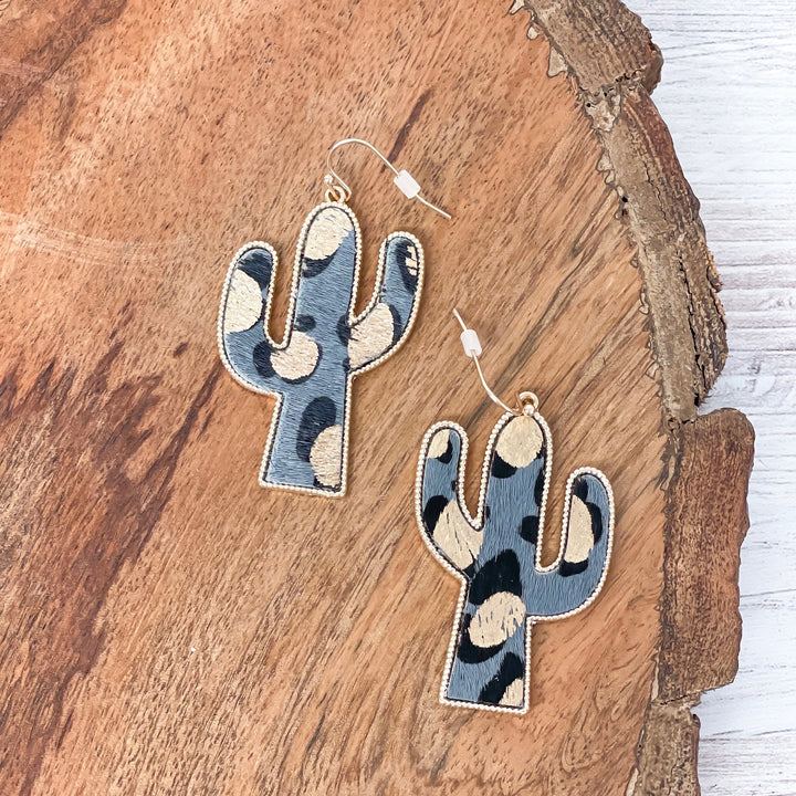 Textured Gold Metallic Cactus Dangle Earrings in Gray