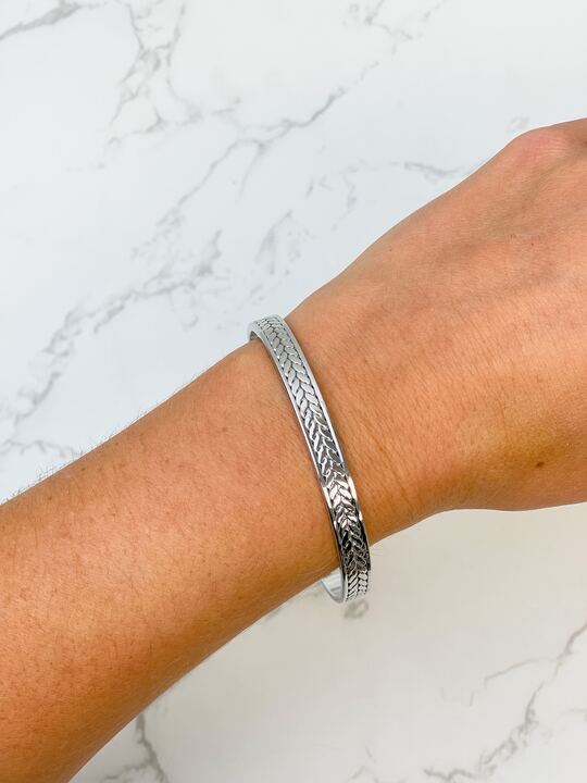 Textured Metal Cuff Bracelet - Silver