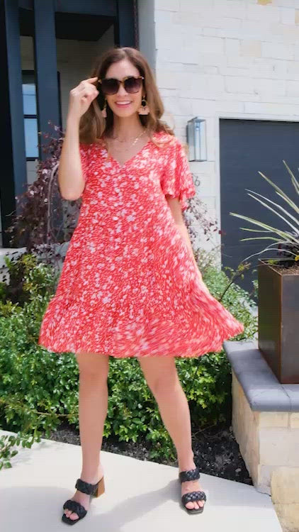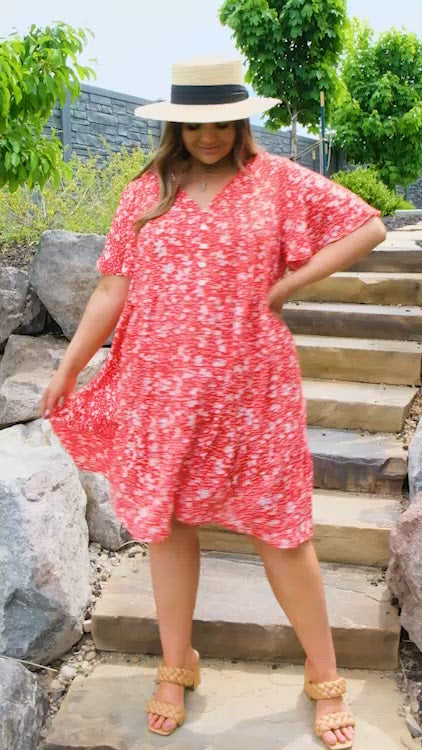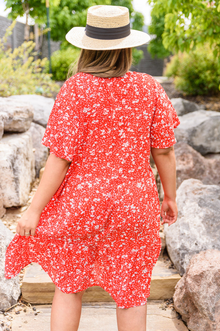 The Way Back Dress has us planning a day trip to the mountains so we can frolic through the flower fields! This stunning red dress is painted in dainty white flowers that features a v-neckline, short flounce sleeves, and a tiered bodice. For a cute summer look pair with white sandals, a matching bag, and a sun hat!