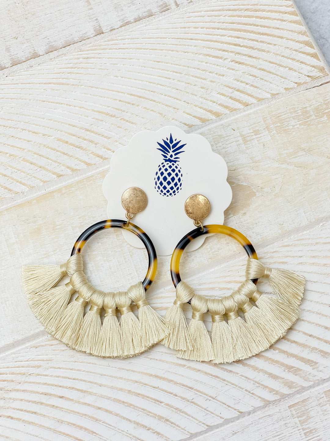 Tortoise Fringe Dangle Earrings - Ivory