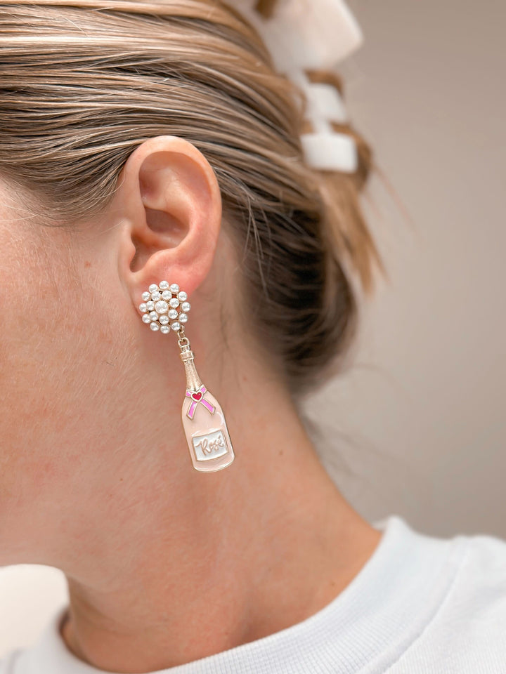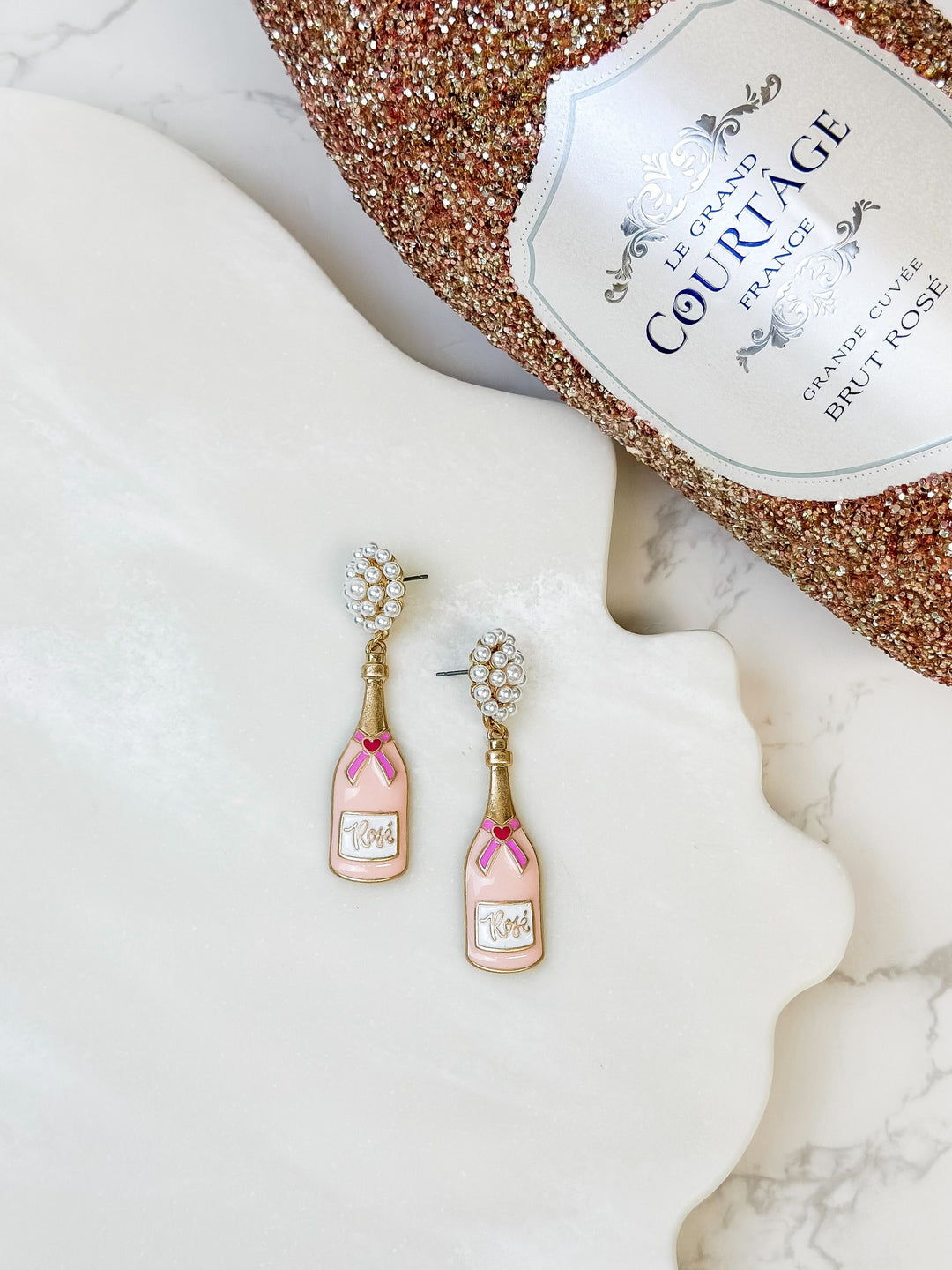 Rosé Bottle Pearl Cluster Drop Earrings by Canvas Style