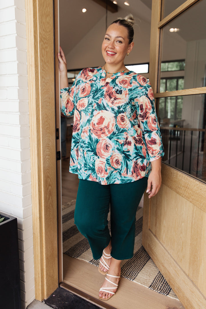 Look and feel your best in the Whisked Away Floral Top! Crafted with luxurious slinky Lightweight, Wrinkle Free, Soft fabric, this top features a bright watercolor floral print and a flattering v-neckline. Its 3/4 length sleeves give it an elegant yet modern style that can be dressed up or down. Don't wait: be whisked away!