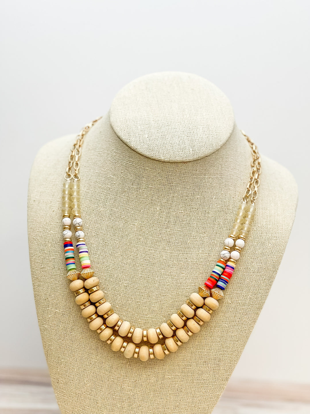 Wood Bead & Rubber Disk Mixed Necklace
